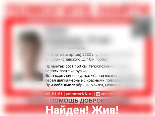 Полицейские нашли пропавшего в Нижнем Новгороде 29 марта 12-летнего школьника. Об этом сообщила пресс-служба ГУ МВД по региону.
