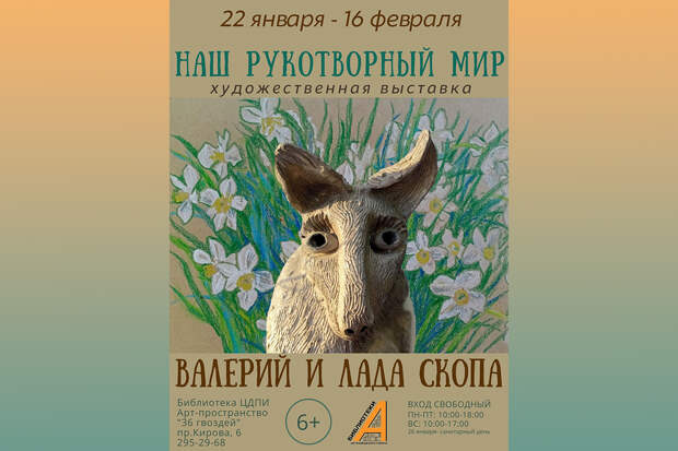 22 января в 16:00 в выставочном АРТ-пространстве «36 гвоздей» библиотеки — Центра деловой и правовой информации (пр. Кирова,6) состоится открытие художественной выставки «Наш рукотворный мир». Посетители выставки увидят графические работы Валерия Федоровича Скопы и керамику его дочери Лады Валерьевны Скопы.