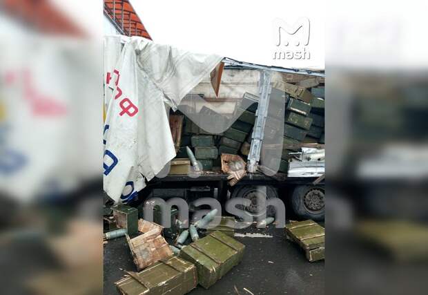 Большегруз, перевозивший боеприпасы, попал в аварию на трассе М‑7 в Нижегородской области. Об этом сообщает NiMash. ДТП произошло около села Мячково 3 мая. Там столкнулись два грузовика. Из-за удара 125-миллиметровые снаряды разбросало по дороге.
