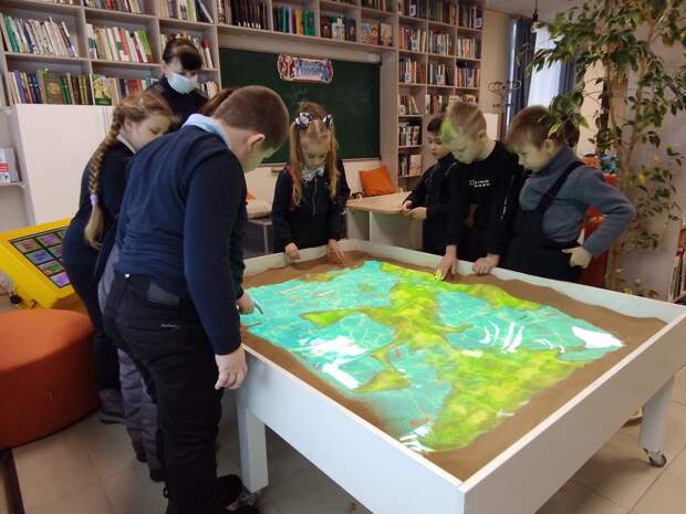 На интерактивной сенсорной панели юные читатели могут порисовать, посмотреть развлекательно-познавательные программы. В читальном зале вместо привычных стульев – мягкий диван. На большом интерактивном экране можно показывать презентации, видео, в том числе для кружковой работы.