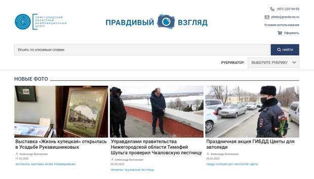 Каждый день в фотобанке «Правдивый фотовзгляд» публикуются свежие фоторепортажи на актуальные темы. Смотрите их — будьте в курсе всех новостей Нижнего Новгорода и области!