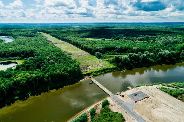 На реке Ока завершается возведение технологического моста для начала строительства одного из трех внеклассных мостов в рамках проекта М-12 и единственного вантового моста. Его центральный пролёт планируется сделать 254 м. Общая протяженность мостового перехода составит 1,3 км, стоять он будет на 17 опорах.