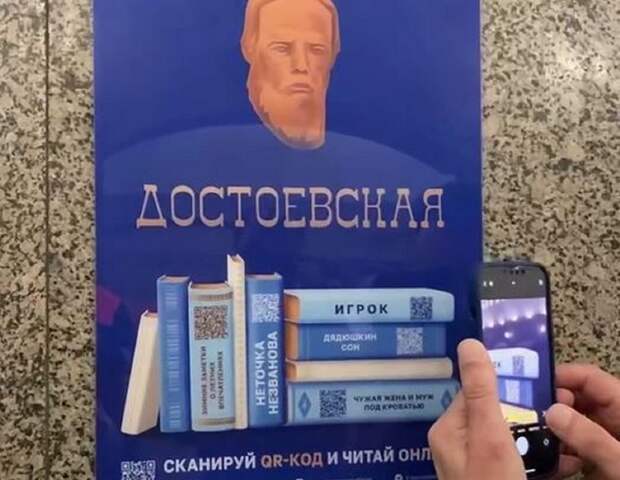 На каждой платформе висит по два плаката. Сканируйте QR-коды, переходите на виртуальную станцию «Литературная» и читайте произведения классиков онлайн», – говорится в сообщении.Так, например, на станции «Достоевская» можно найти QR-коды, по которым находятся книги Федора Достоевского.