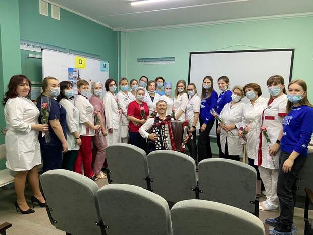 В преддверии Международного женского дня мы хотели сердечно поблагодарить женщин-медиков за их нелегкий труд и пожелать им крепкого здоровья, успехов в работе, благополучия и весеннего теплого настроения», – отметила руководитель НРО ВОД «Волонтеры Победы» Мария Самоделкина.Волонтеры поздравили медработников, а также вручили им цветы, торты. Благодарственная речь в адрес врачей сопровождалась музыкальным сопровождением нижегородского баяниста. Медики вместе с волонтерами исполнили любимые песни.