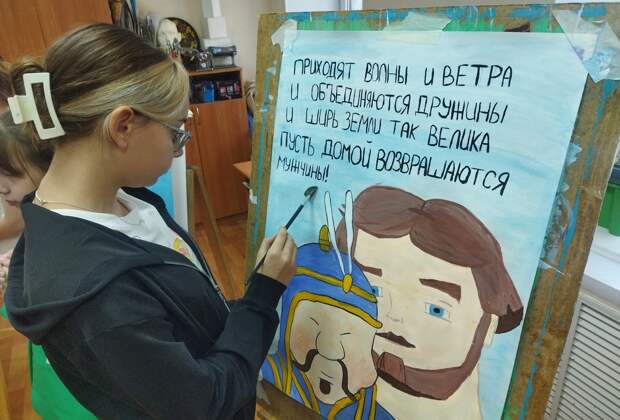 «Моя работа будет представлена в номинации «Культурный код России». На ней герои заключили мир и направляются домой. Текст на плакате мы придумали вместе с педагогом», – рассказала девочка и призналась, что её работы ещё никогда не выставлялись на таких значимых выставках.